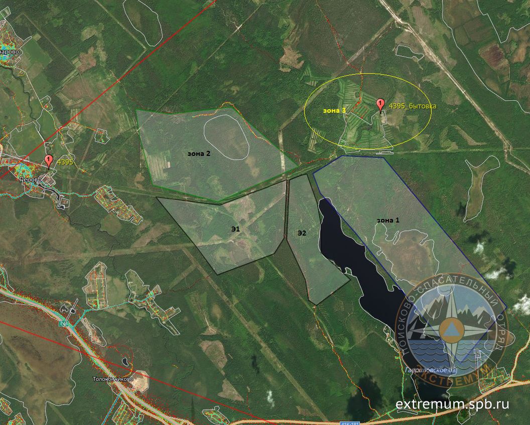 Текущая картинка: Э1 и Э2 - то что группы дорабатывают. Из ближайших планов: Зона 1 - зона первого приоритета (удобное местоположение относительно ЛКП, хороший грибной лес (по опросам местных, ездят туда), бьется с пеленгом) Зона 2 - зона второго приоритета (возвращаясь, заглянула за грибами, но по другую сторону дороги) Зона 3 - зона вокруг Осиновки, ее тоже хорошо бы проверить, потому что раньше терялась вокруг Осиновки, сын находил.